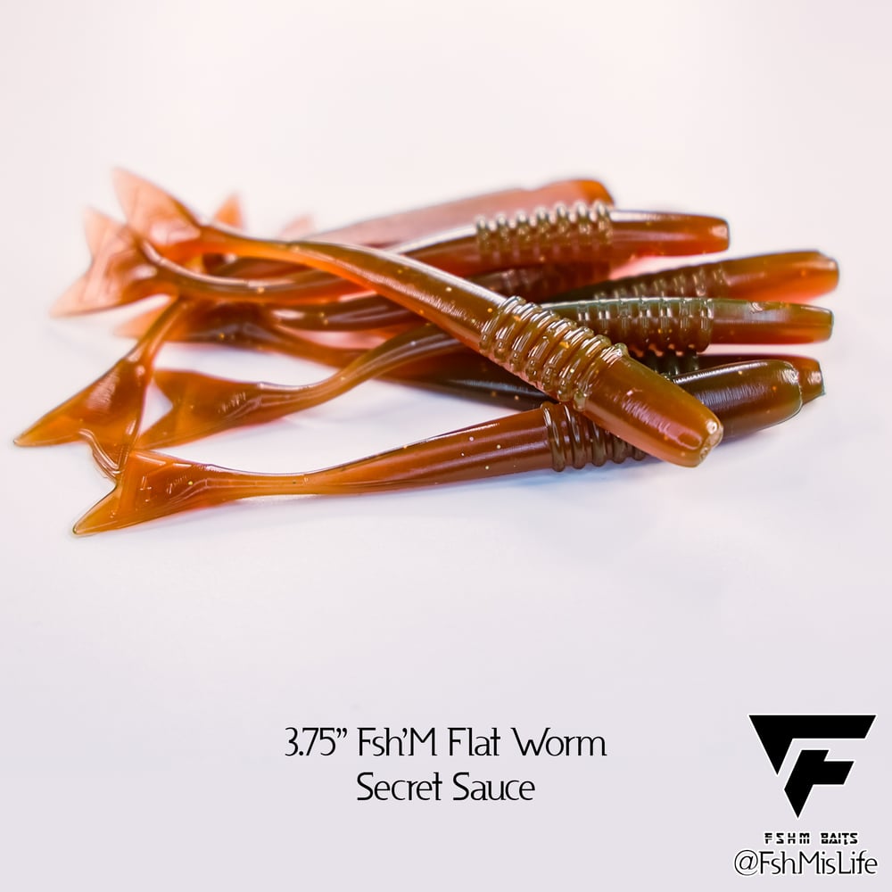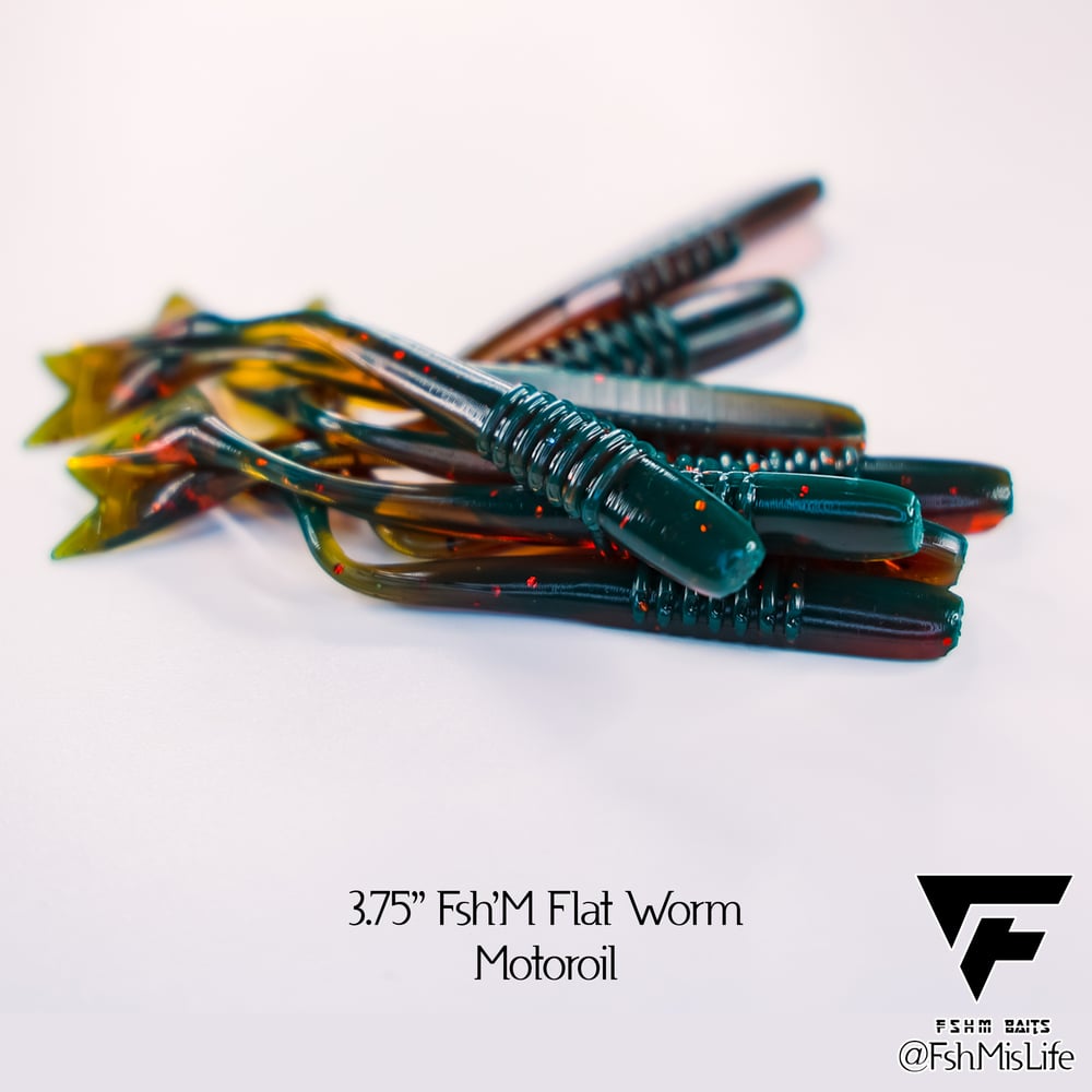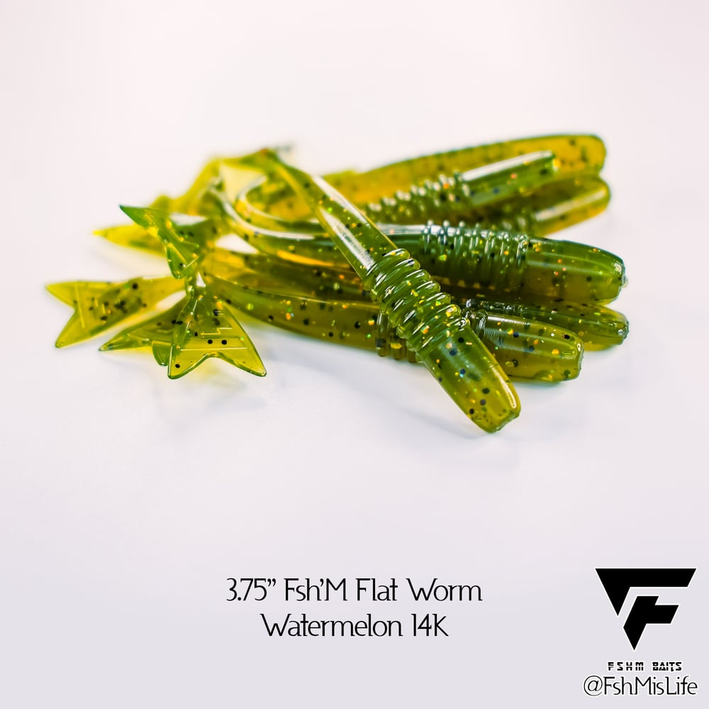 8 Per pack of 3.75" Fsh'M Flat Worm - Choose colors bait and flakes to your liking, for custom colors an order of $40 or more is required.